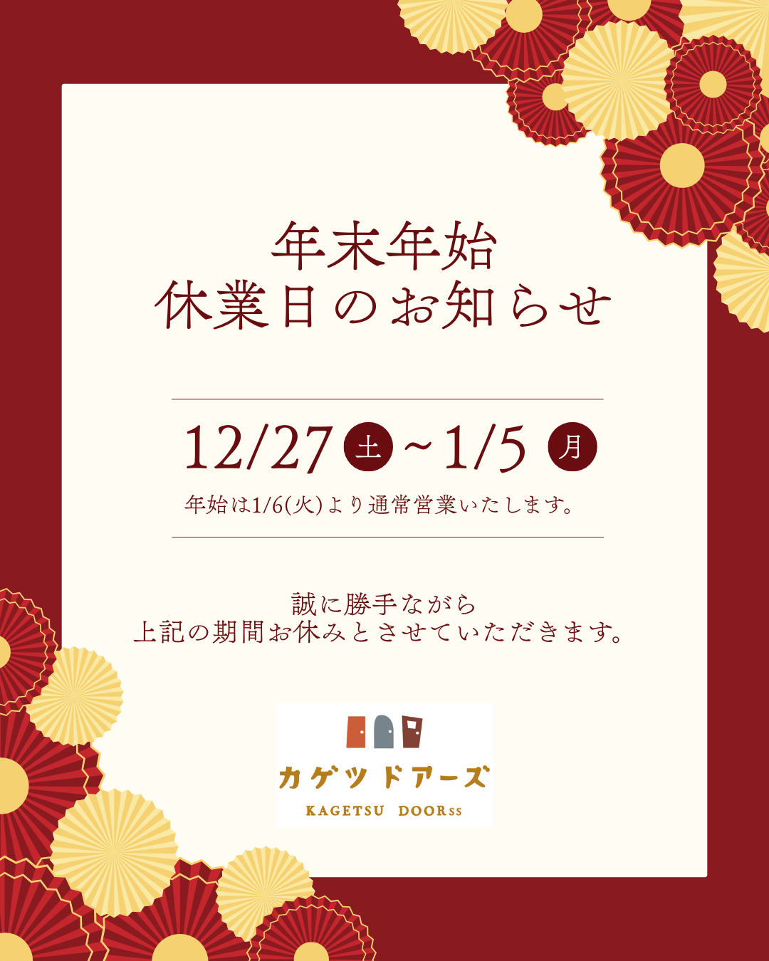 | 2025年12月26日 | 年末年始休業日のお知らせ |
